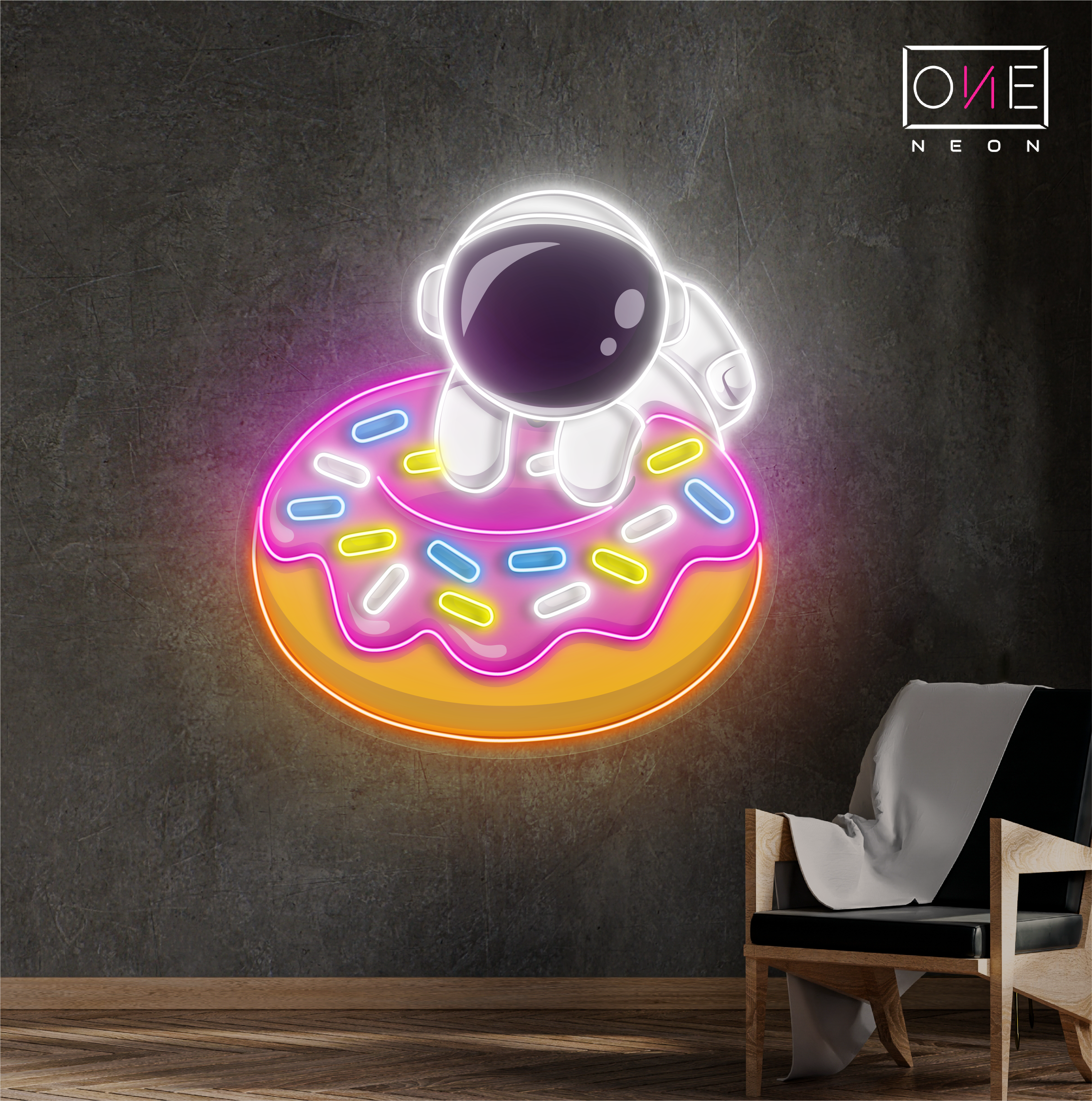 Donut astronaut artwork led neon sign