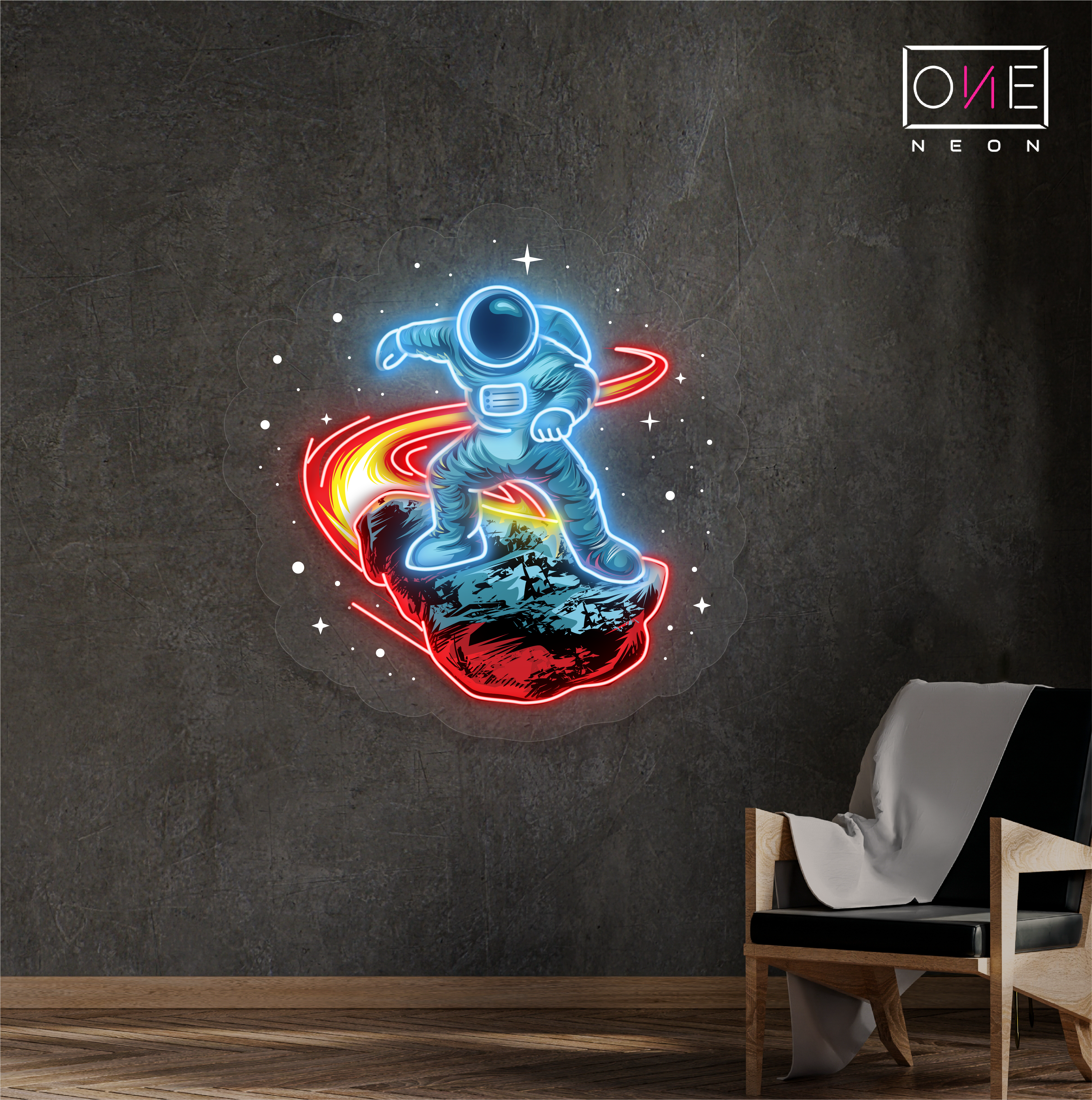 Meteor surfing astronaut artwork led neon sign