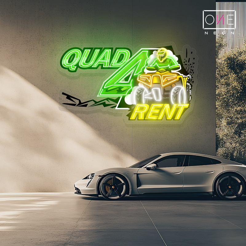 Illuminate any space with the Quad 4 Rent Artwork LED Neon Sign – perfect for creating a vibrant, modern ambiance....