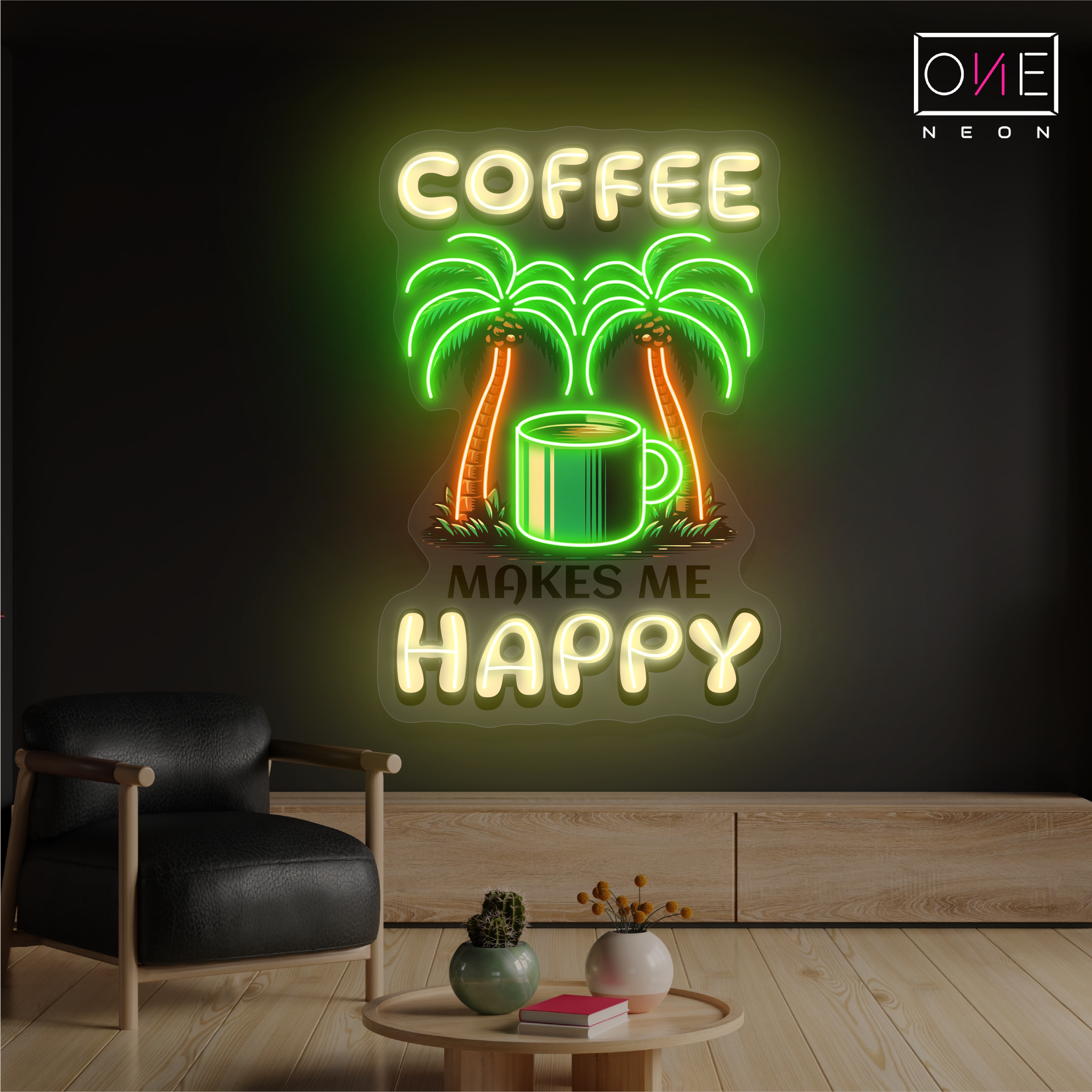 Coffee happy artwork led neon sign
