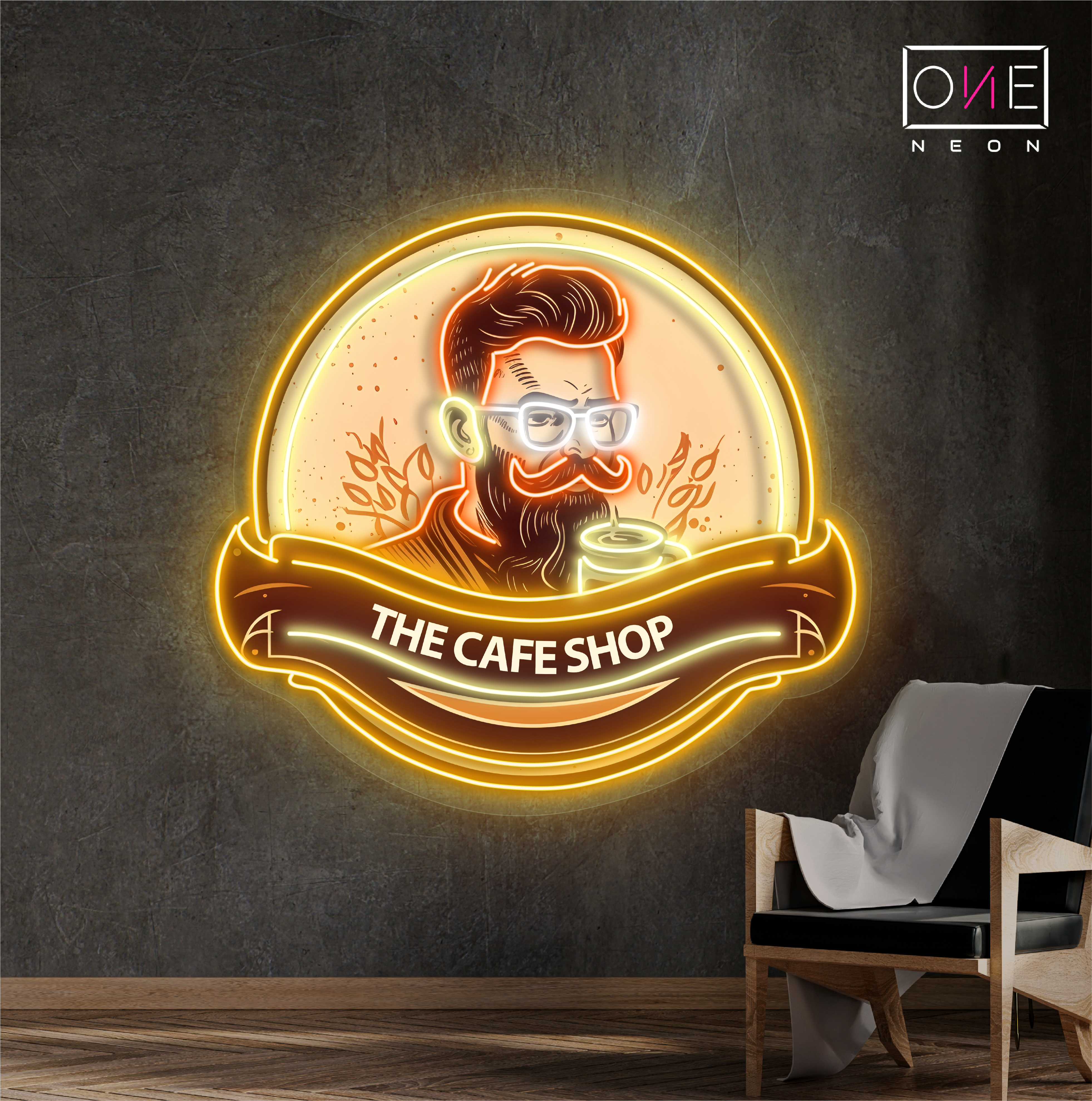 Hipster coffee artwork led neon sign