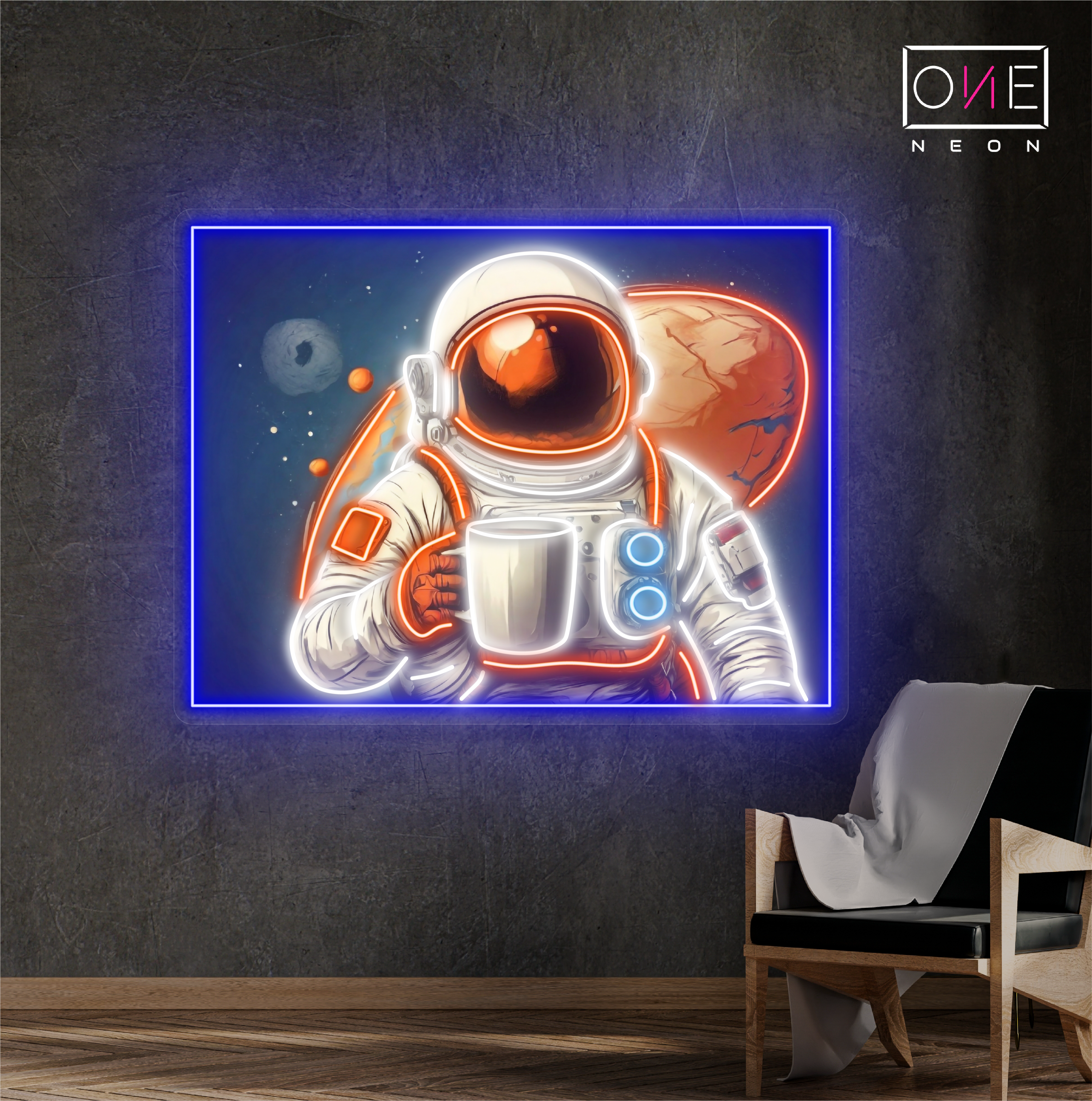 Astronaut coffee artwork led neon sign