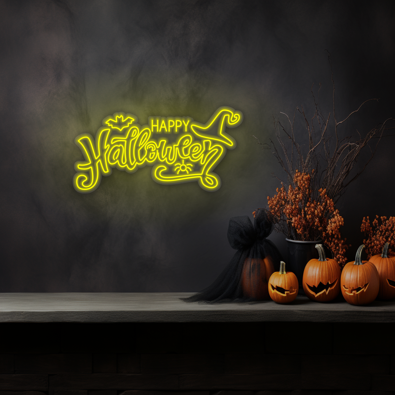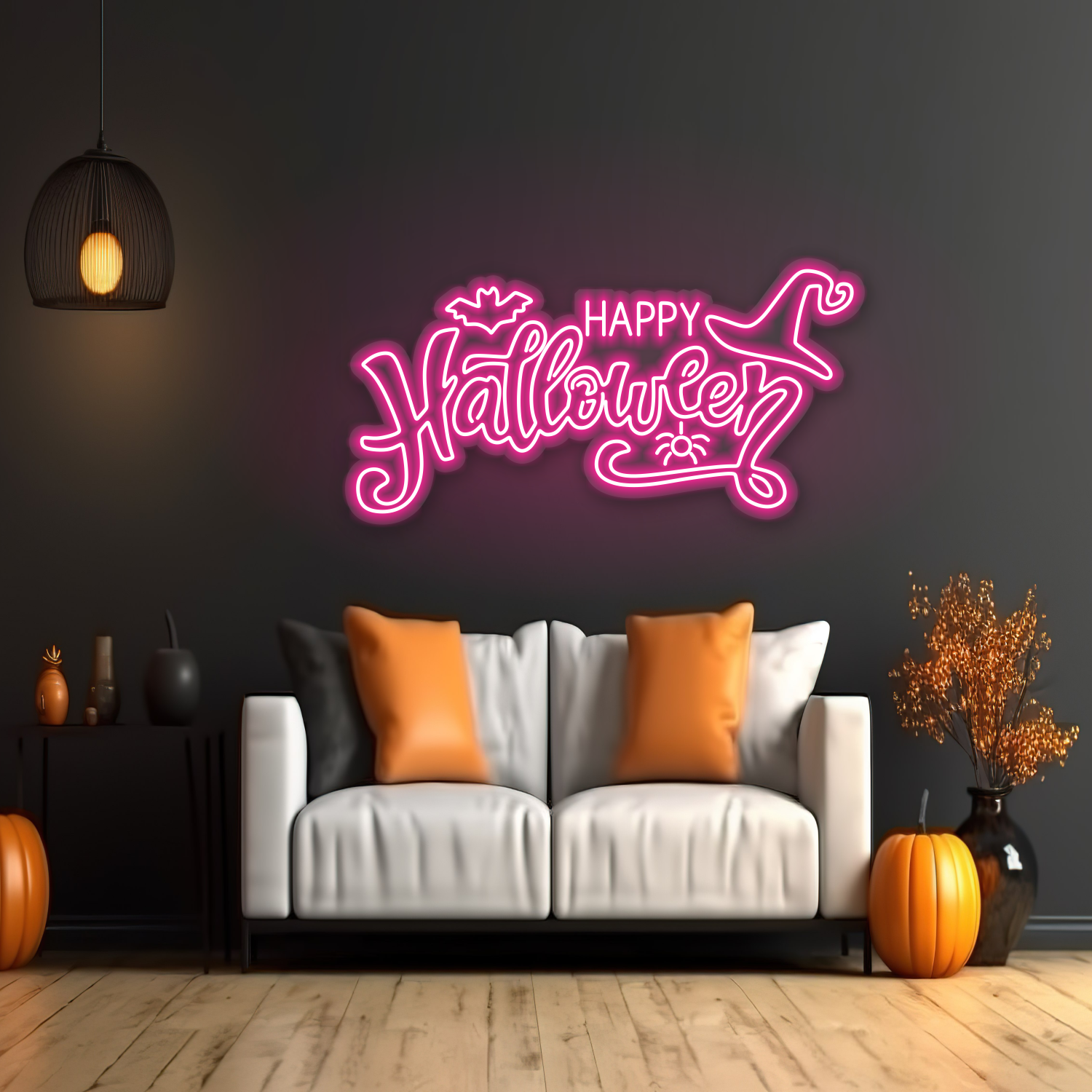 Add a playful glow to your spooky nights with the Happy Halloween Neon LED Sign – Pink Witch Hat Edition....