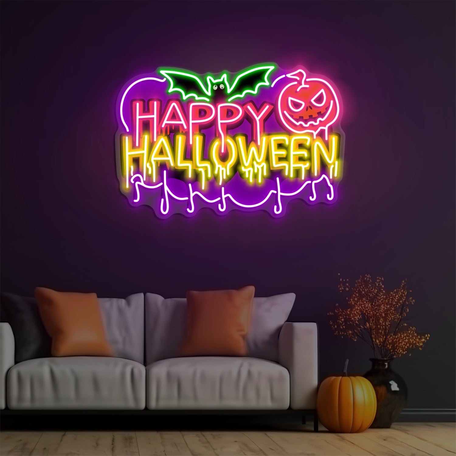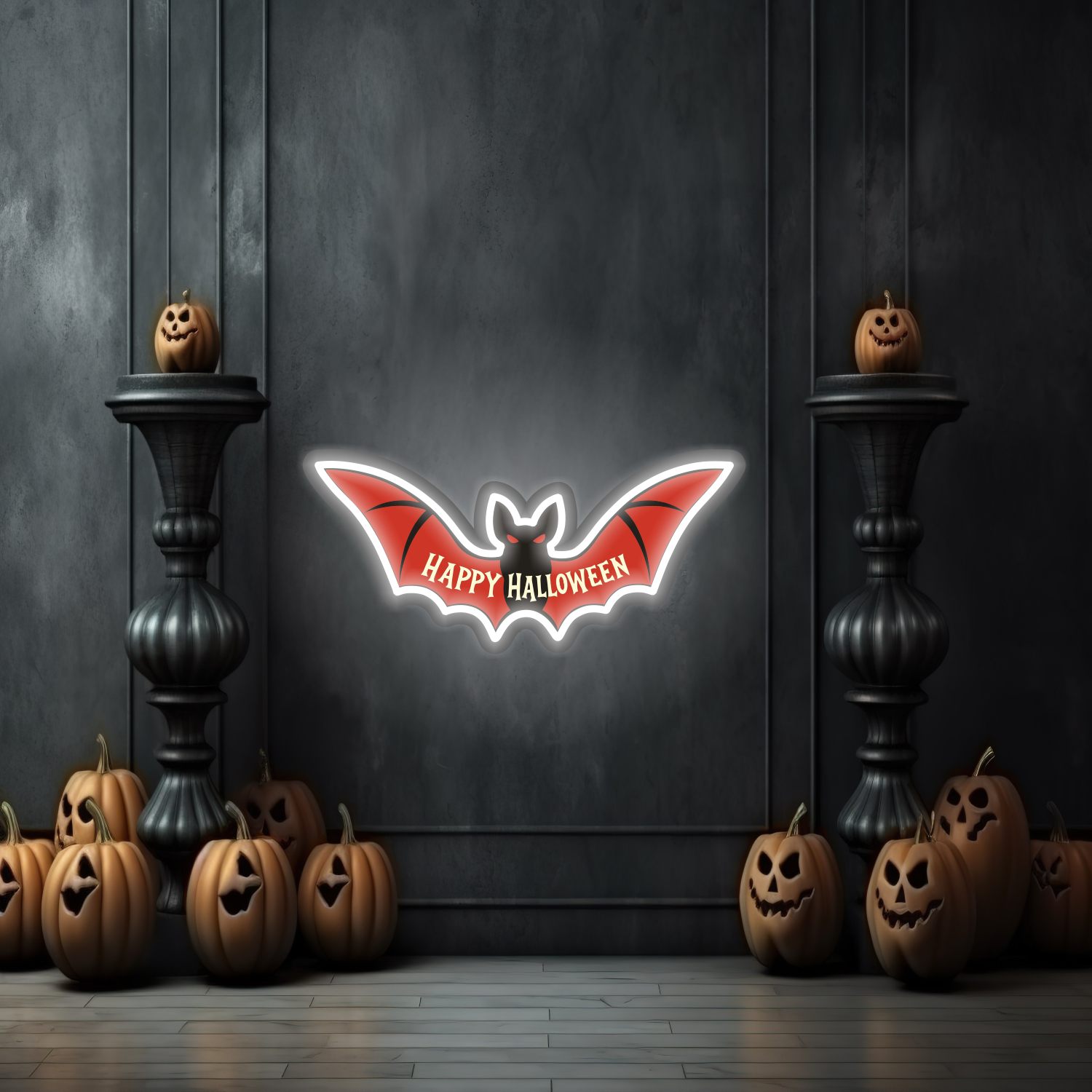Bring a haunting glow to your Halloween setup with the Happy Halloween Bat Neon LED Sign. Featuring a striking bat...