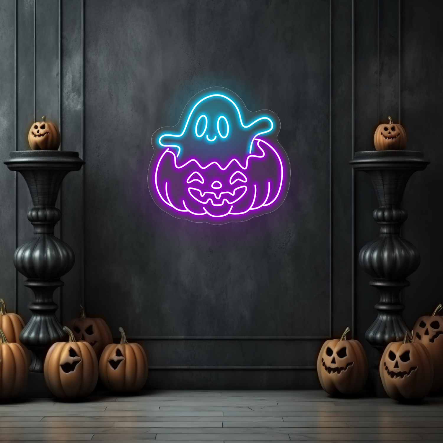 Add a touch of spooky-cute charm to your space with the Ghost in Pumpkin Neon LED Sign. Featuring a glowing...