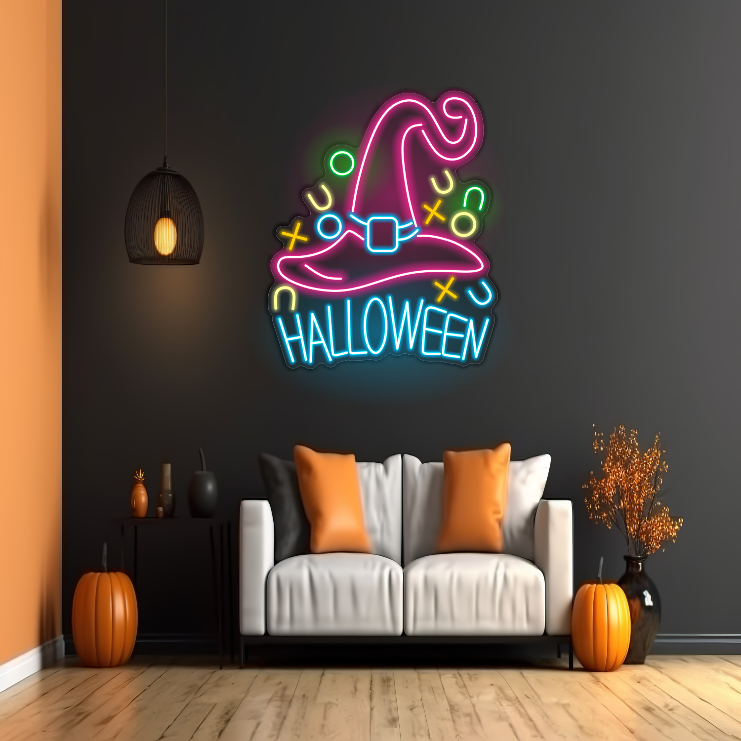 Cast a magical glow this spooky season with the Witch Hat Halloween Neon LED Sign. Featuring a glowing purple witch...