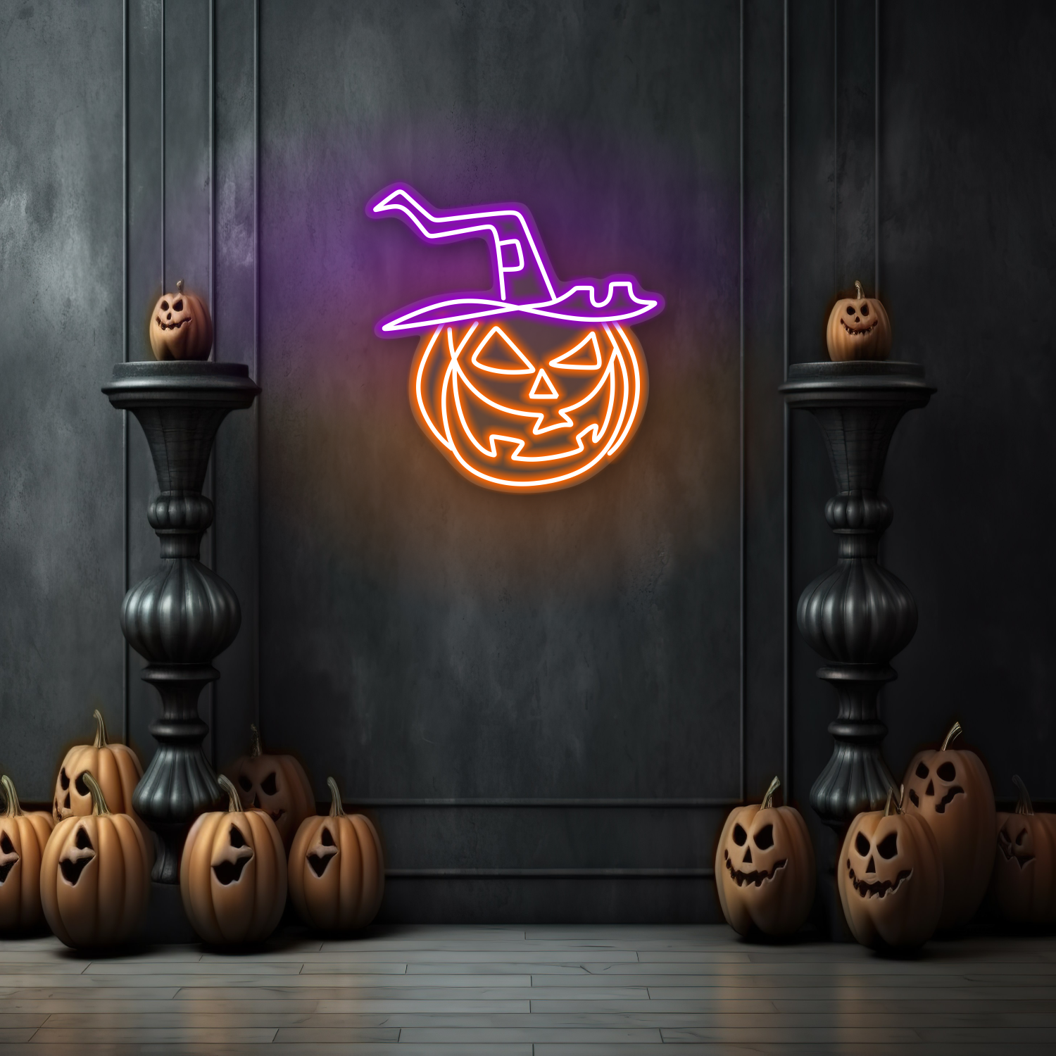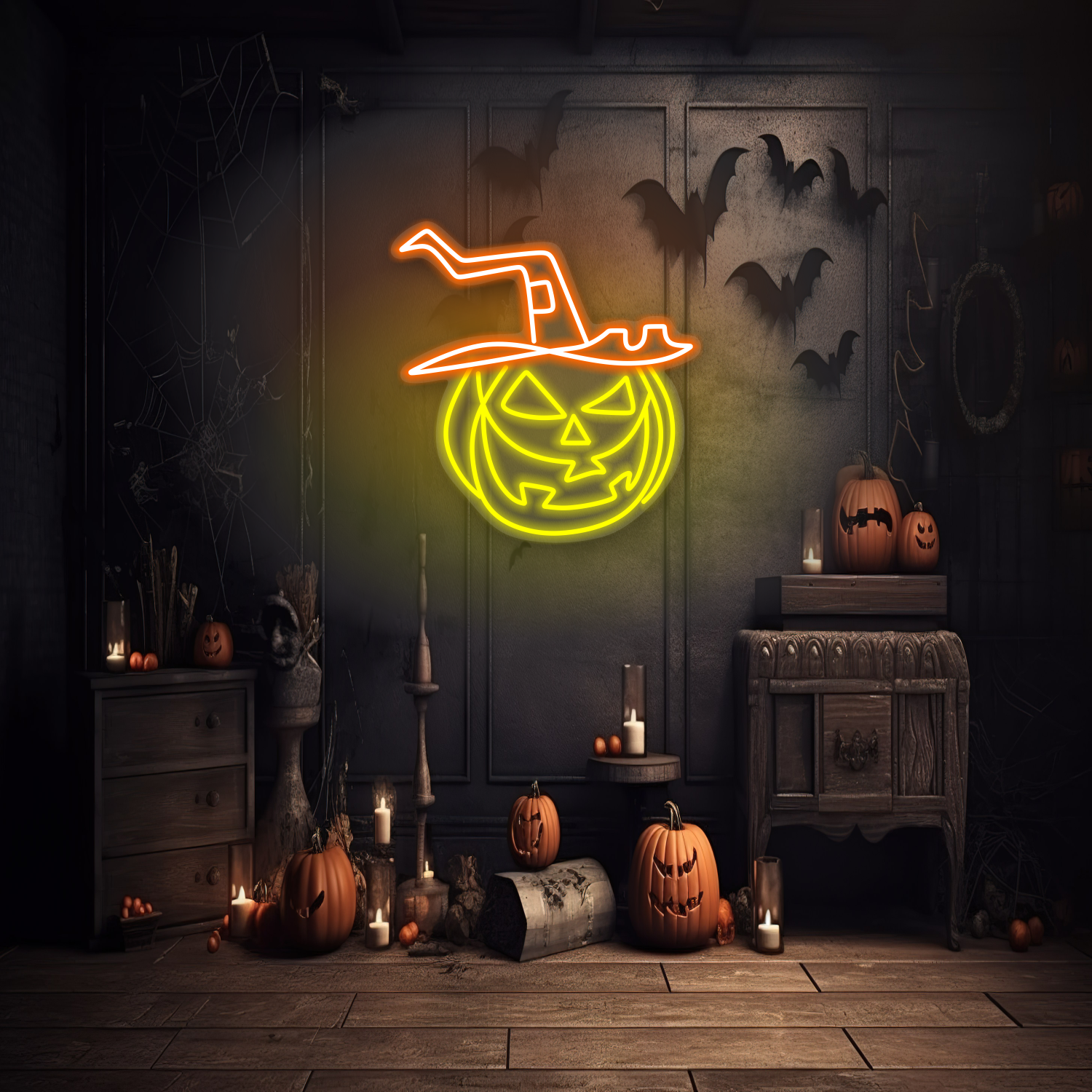 Illuminate your haunted nights with the Pumpkin Witch Hat Neon LED Sign, featuring a mischievous jack-o’-lantern topped with a glowing...