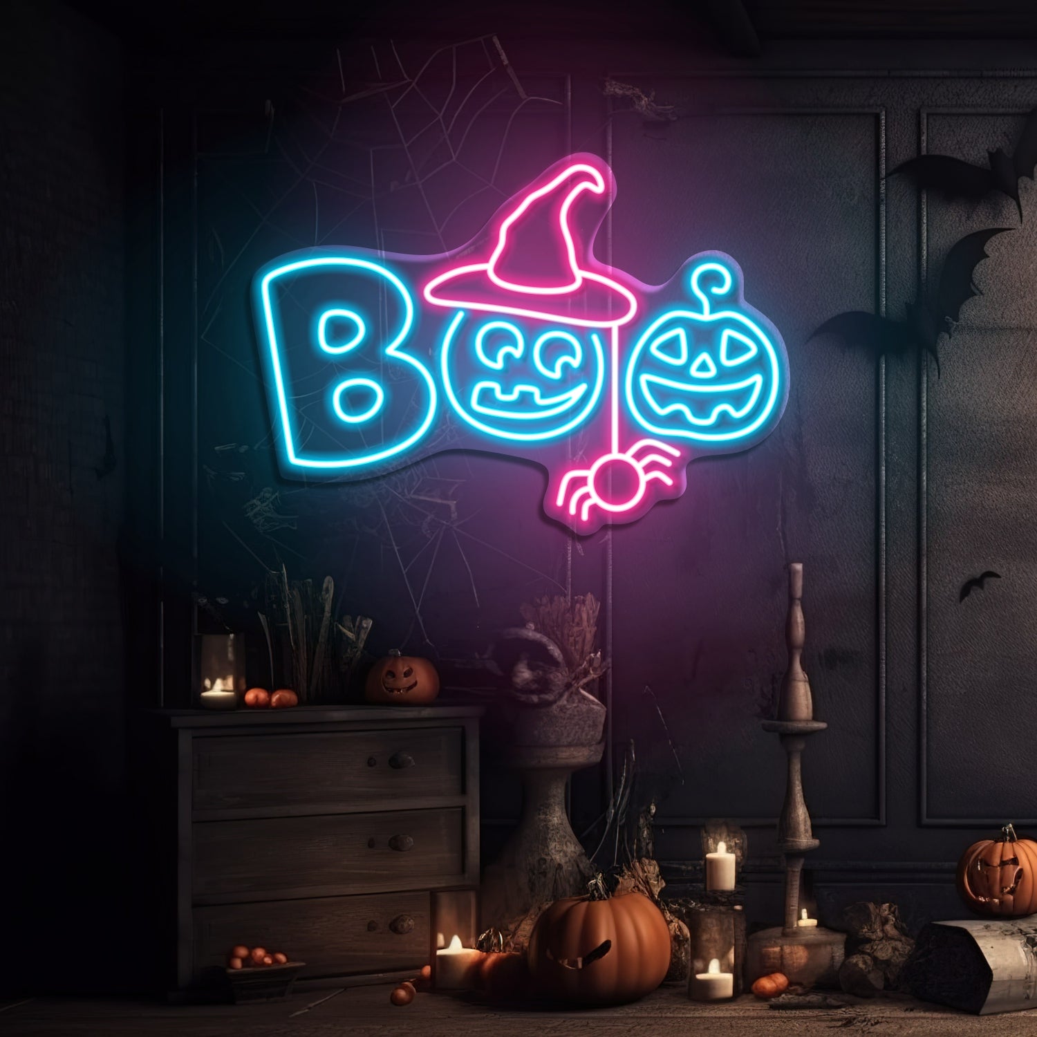 Add a playful glow to your spooky season with the Boo Neon LED Sign with Ghost & Pumpkin. Featuring a...