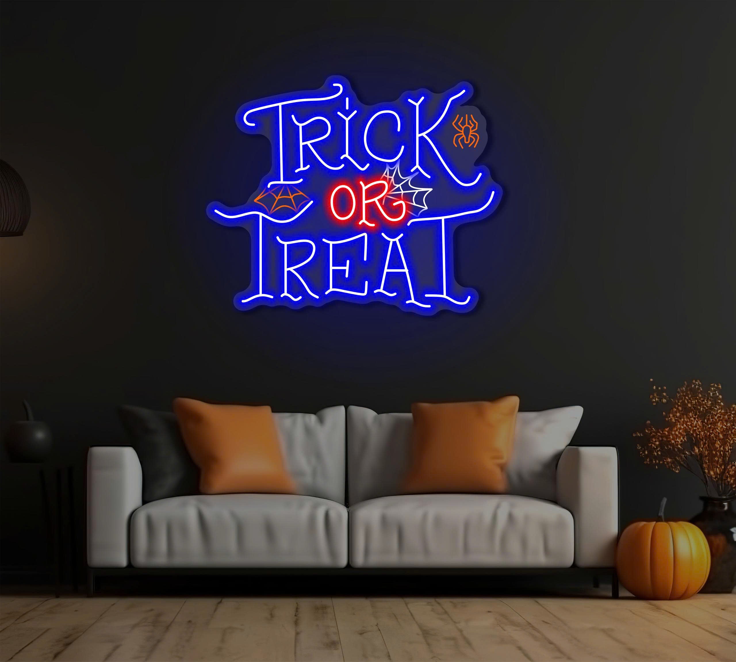 Bring the ultimate spooky vibe to your home with the Trick or Treat Neon LED Sign with Spider Web. Featuring...