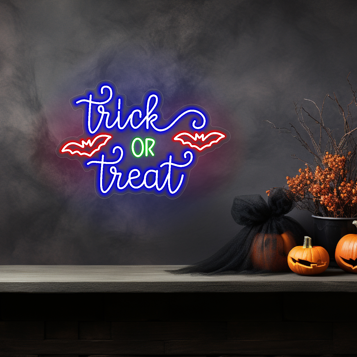 Bring a festive glow to your spooky nights with the Trick or Treat Neon LED Sign with Bats. Featuring elegant...