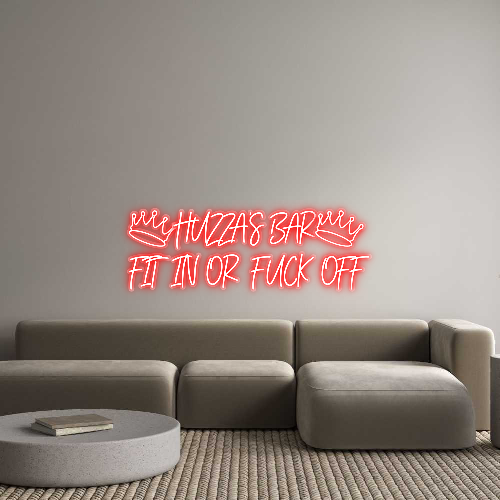 Text: Crown HUZZA’S BAR Crown FIT IN OR FUCK OFF