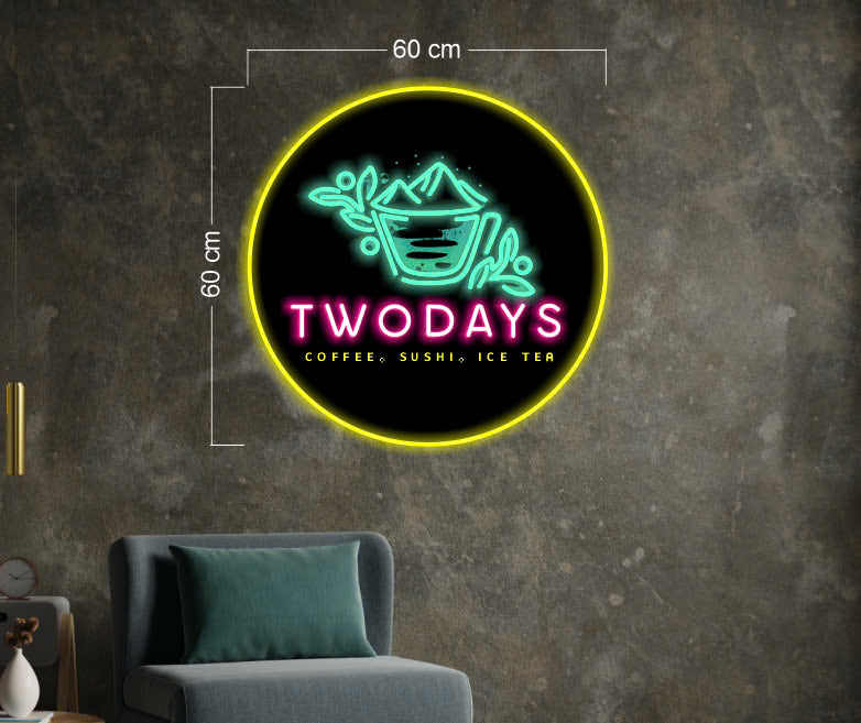 Panneau néon à led représentant une œuvre d'art représentant des sushis de cuisine japonaise