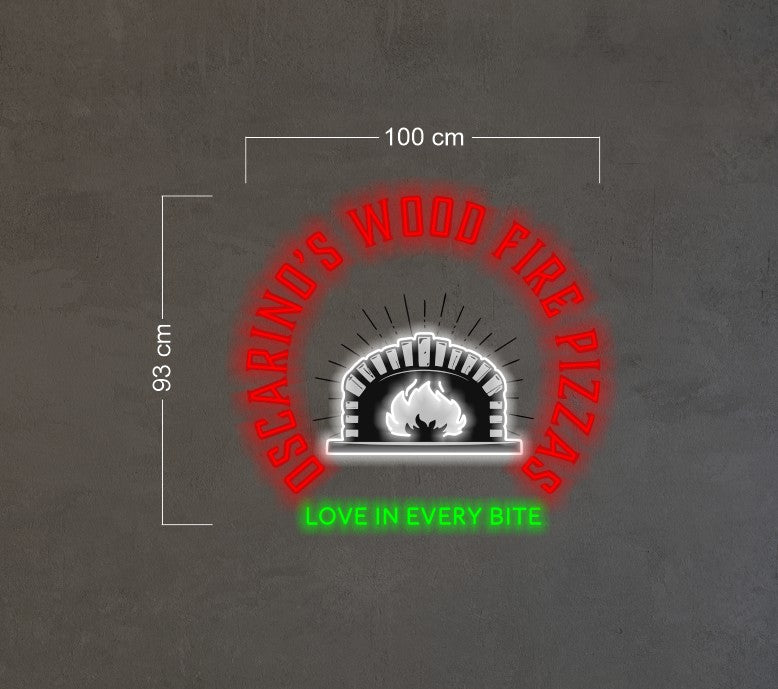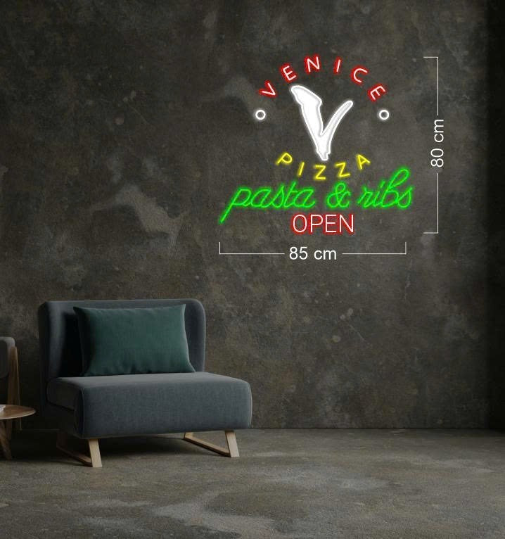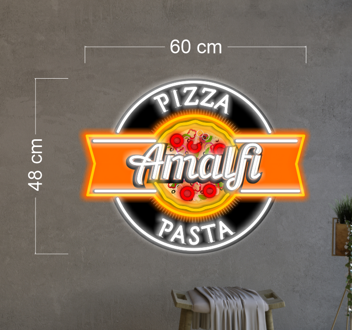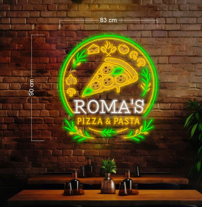 Enseigne au néon à led avec illustration de pizza italienne