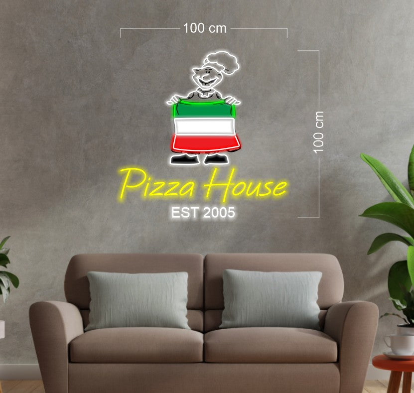Panneau néon à led avec illustration de master chef's pizza