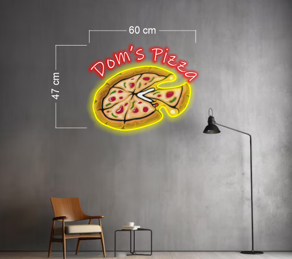 Panneau néon à led représentant une tranche de pizza