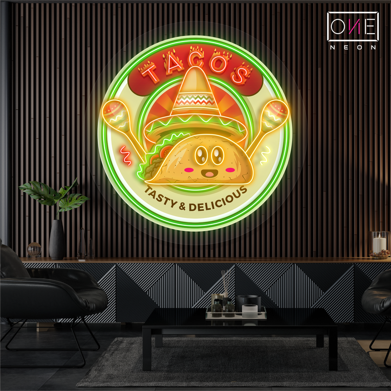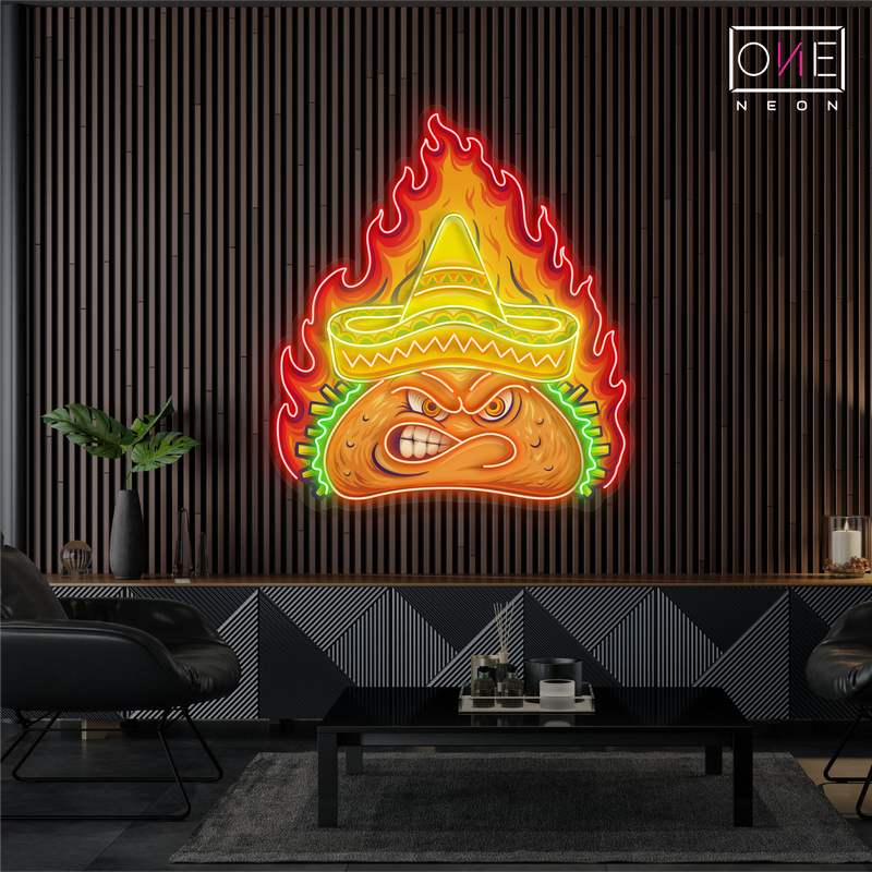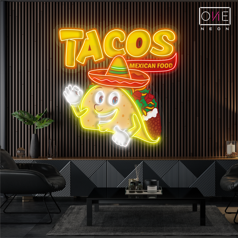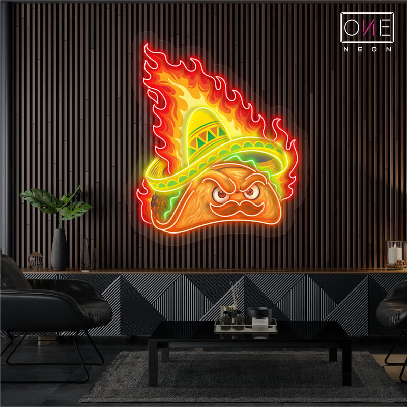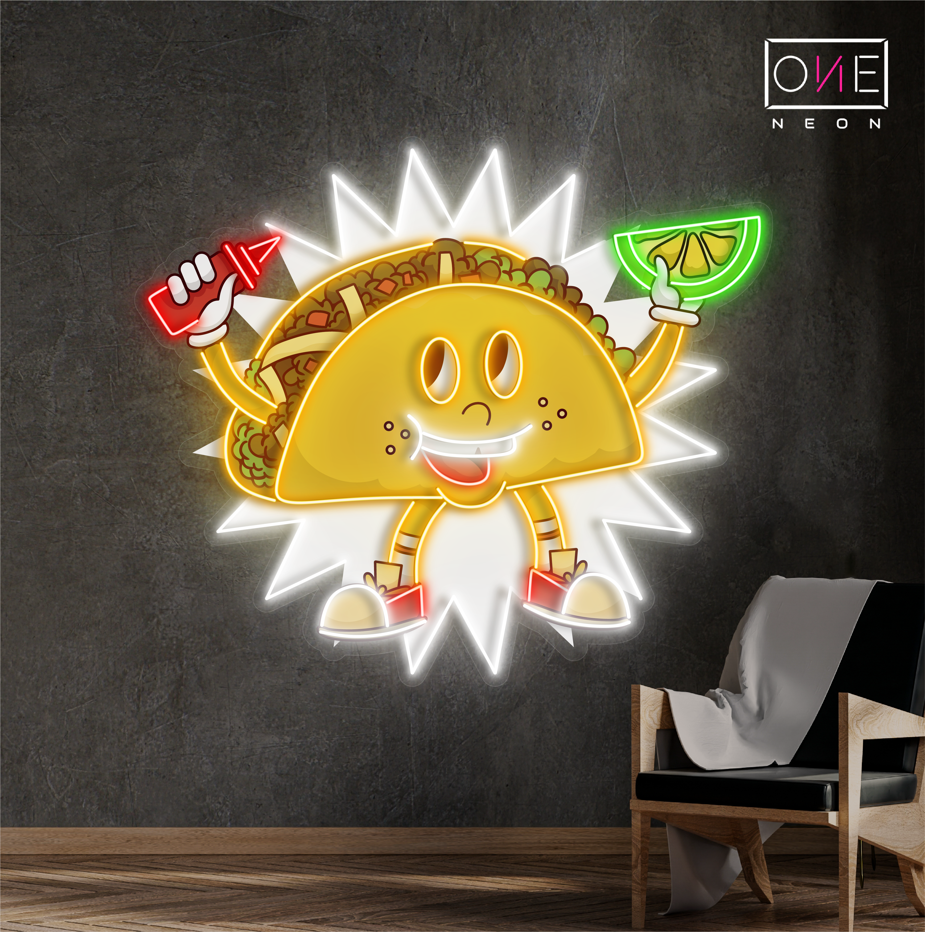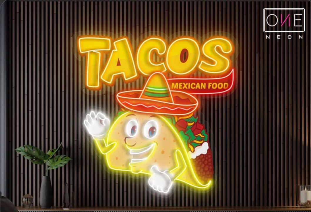 Panneau néon à led représentant une œuvre d'art culinaire mexicaine tacos