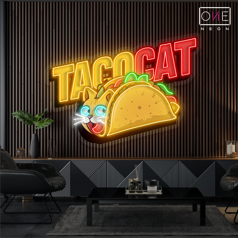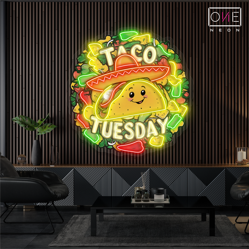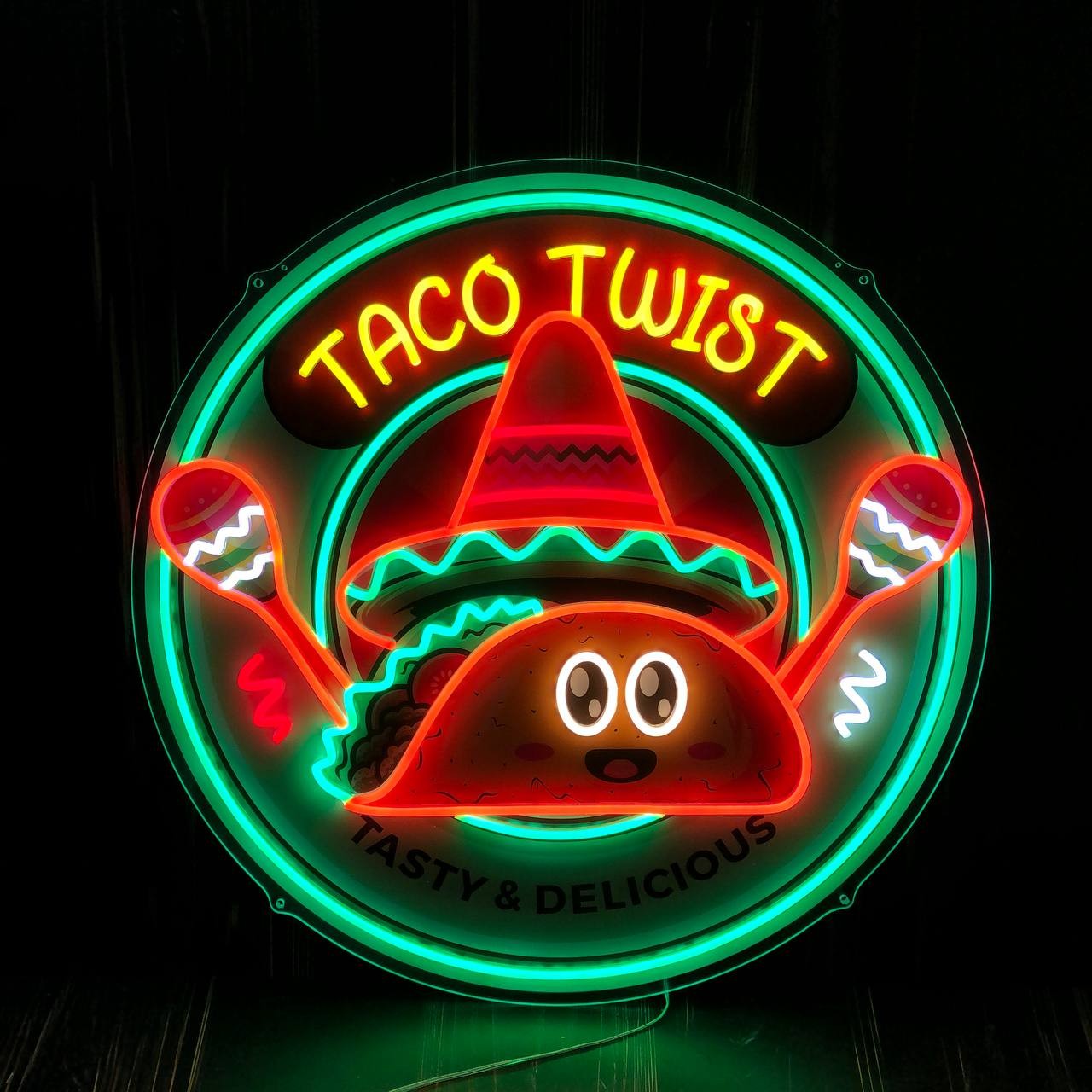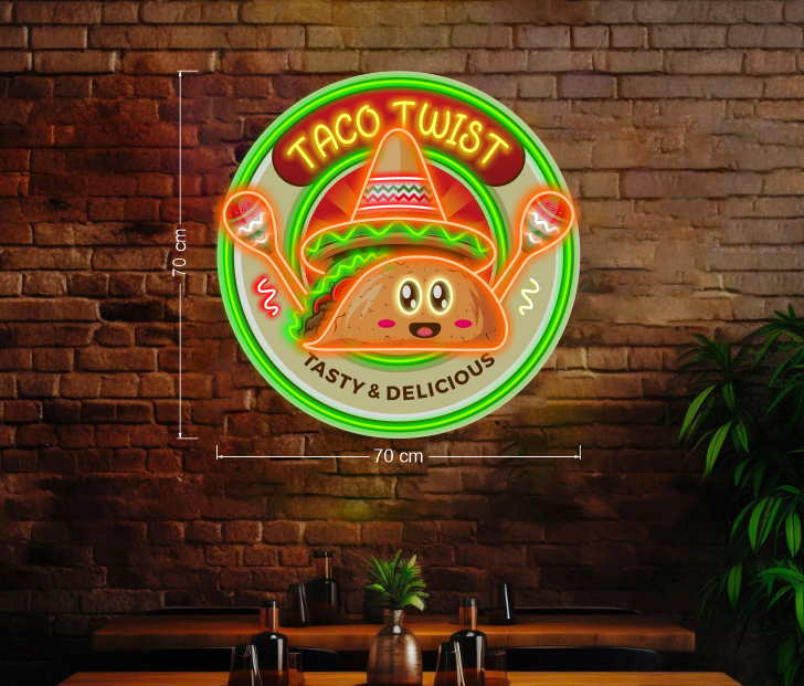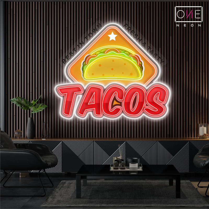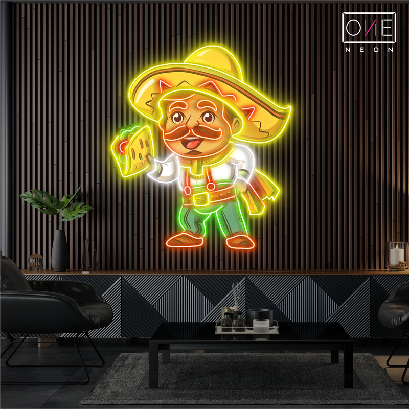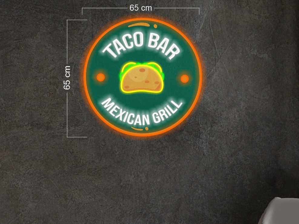 Panneau néon à led représentant une œuvre d'art culinaire mexicaine tacos