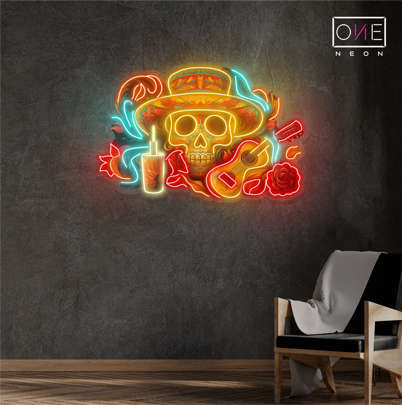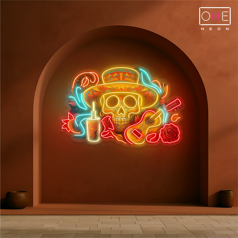 Mariachi Skull Serenade Artwork Led Neon Sign